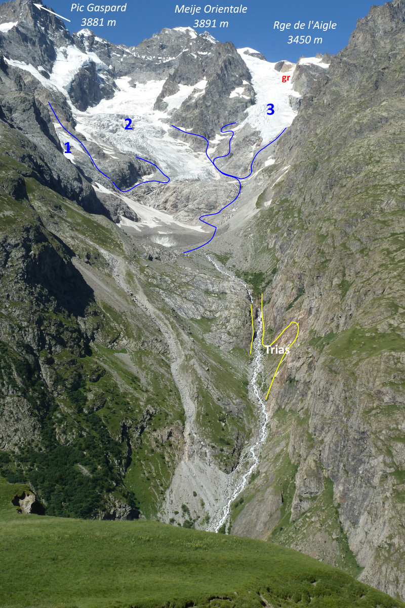 Le sentier des crevasses est l'itinéraire classique pour accéder au Refuge de l'Alpe depuis le Col du Lautaret. Sa description est ici en partie reprise de Pêcher et Tordjman (2018).
