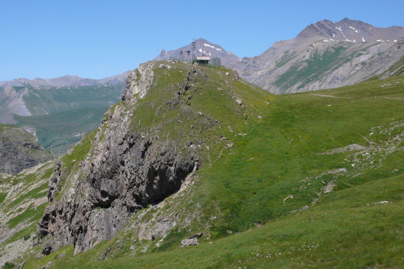 Après le Belvédère (sur l'éperon d'entrée dans la vallée du refuge), le sentier, taillé dans les calcschistes sombres du Jurassique, traverse sur plus d'un km un versant très raide, où il est un peu vertigineux. Régulièrement emporté lors des gros orages, il a été souvent refait et est normalement bien sécurisé.