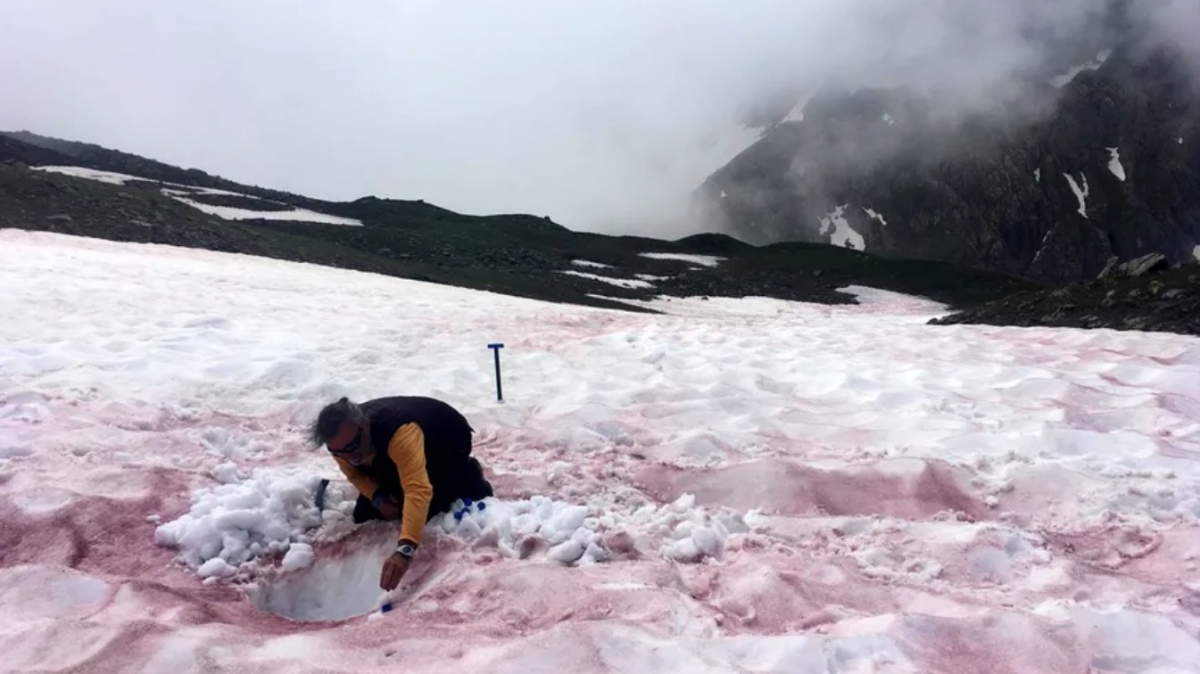 Nombreux sont les alpinistes de moyenne ou haute montagne qui s'interrogent sur ces larges taches d'un beau rouge - Lie-de-vin - rencontrées sur les névés ou bien ces colorations rouge orangées au rebord aval des taches de névé sur glacier ou encore cette glace couverte de grains rouge foncé ! Quelques explications sur ces observations étranges....